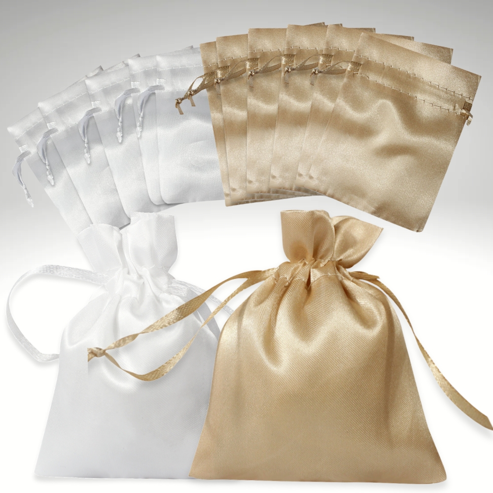 Material: O cetim utilizado é macio, com brilho sutil e toque suave. Seu acabamento refinado e sua resistência tornam o saquinho perfeito para armazenar produtos com segurança, ao mesmo tempo que proporciona uma apresentação impecável.