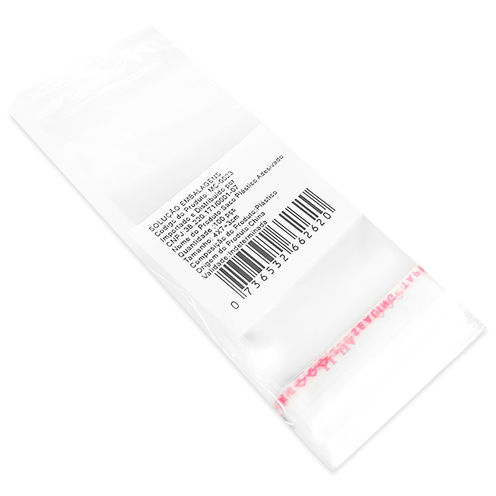 100 Unidades saco Plástico Adesivado sem Solapa 4x7 cm