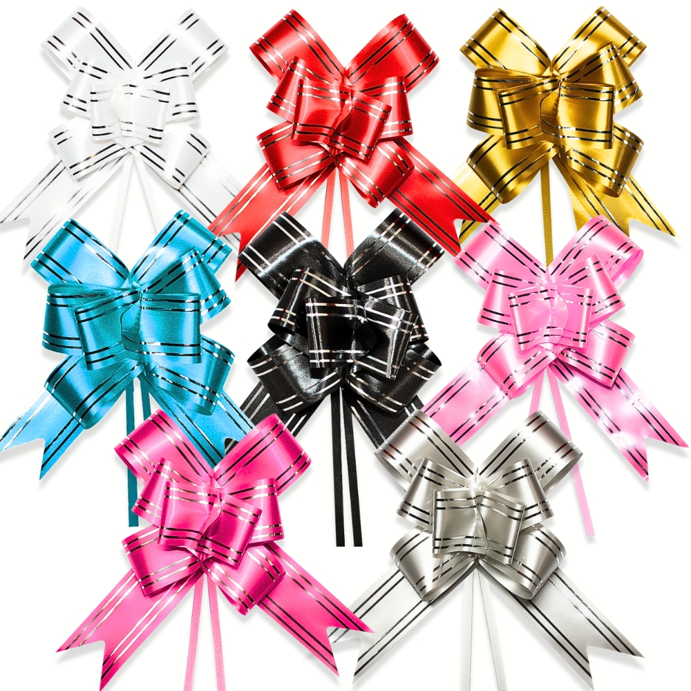 Laço Fácil com filete prateado 28mm x 47cm. Ideal para decoração de presentes e lembranças.