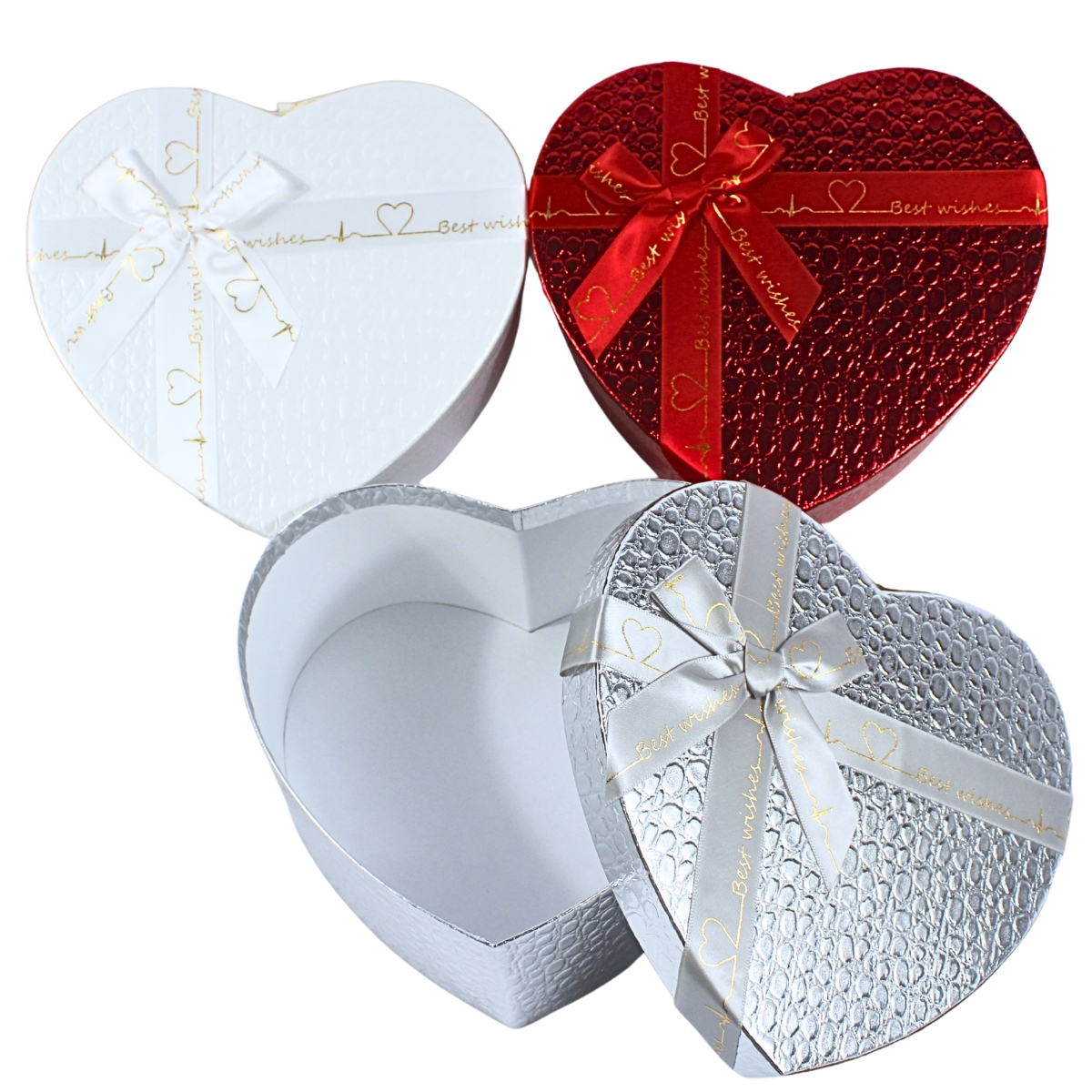 Apresente seus presentes com ainda mais charme com o Kit 3 Caixas para Presente Formato Coração. Elegantes, resistentes e com acabamento texturizado, essas caixas são perfeitas para surpreender em qualquer ocasião especial. Cada kit acompanha 3 caixas do mesmo modelo e da mesma cor, todas com tampa decorada e laço, ideal para deixar o presente ainda mais sofisticado sem necessidade de embalagens adicionais.