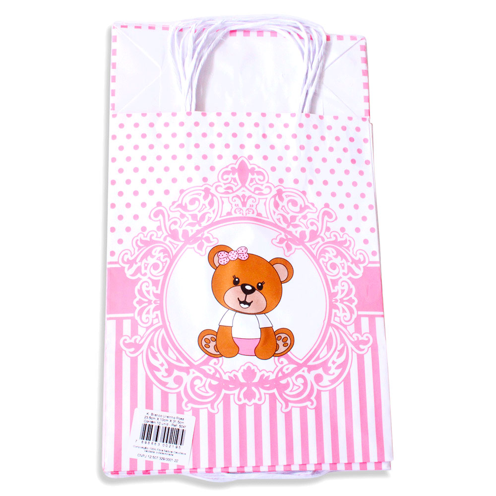 Sacola Kraft de Presente Urso Rosa Tamanho 21,5x17,5x8,5 Kit com 10 unidades
