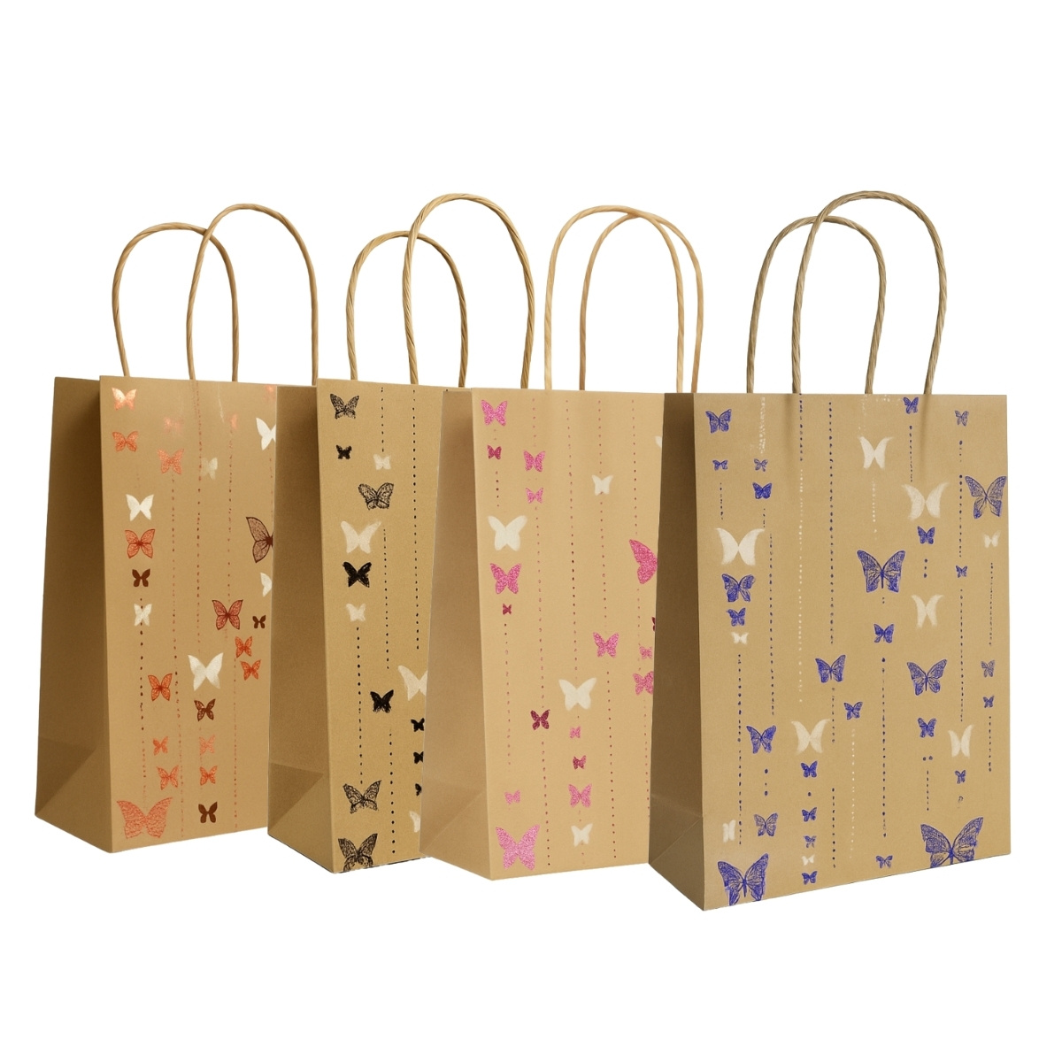 Transforme cada presente em um momento especial com o charme e a delicadeza das sacolas kraft estampadas com borboletas!