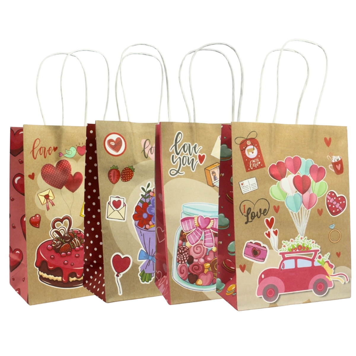 Encante em cada detalhe! O Kit de Sacolas de Presente Kraft “Love Story” traz todo o charme e romantismo em quatro lindas estampas exclusivas, perfeitas para celebrar o amor e o carinho em qualquer ocasião.
