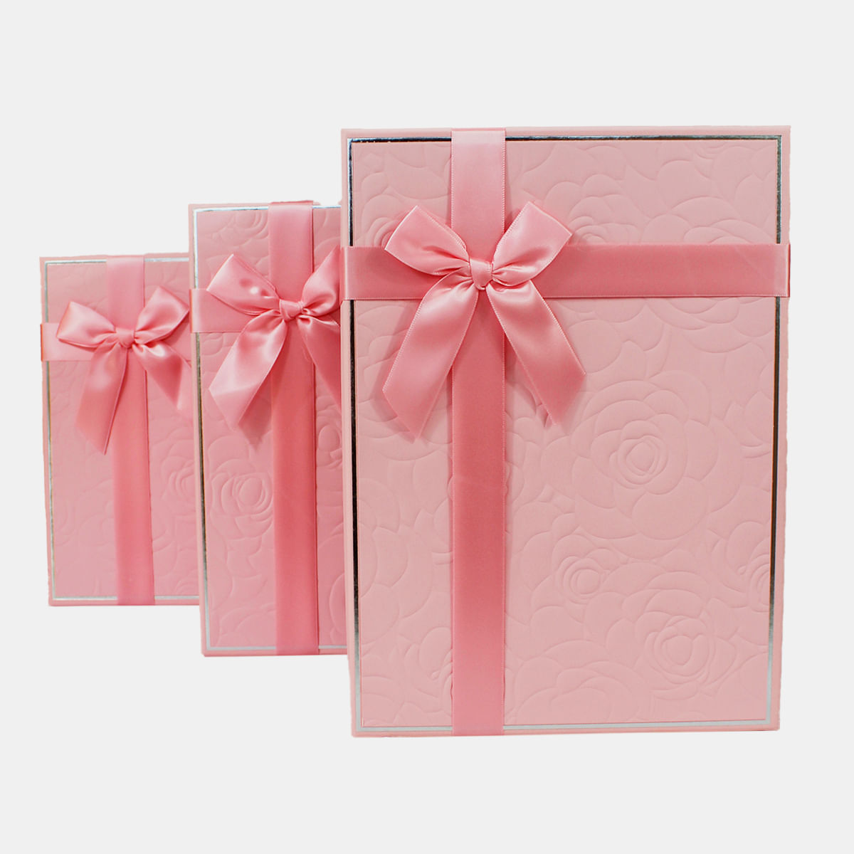 Dê um toque especial aos seus presentes com este lindo Kit 3 Caixa Para Presente Retangular Rosa Com Fio Dourado