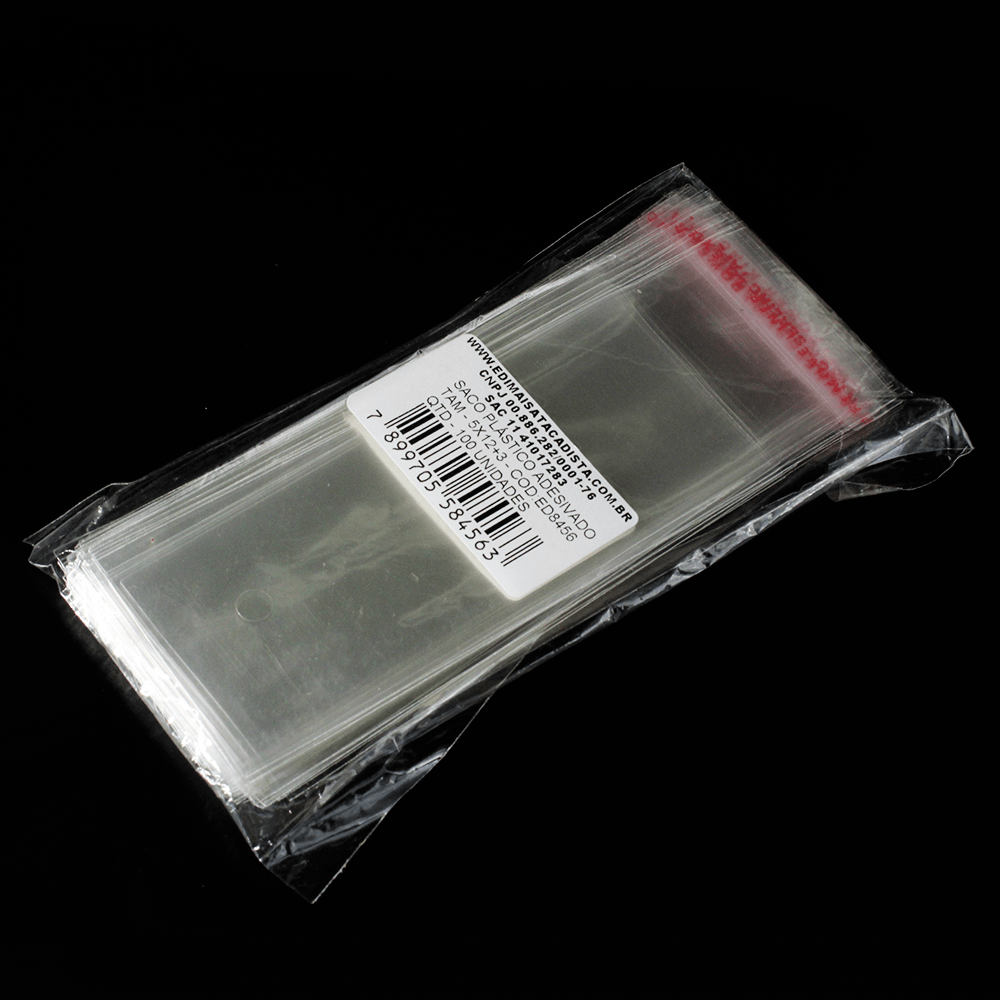 Saco Plástico Adesivado 5x12cm - 100 unidades