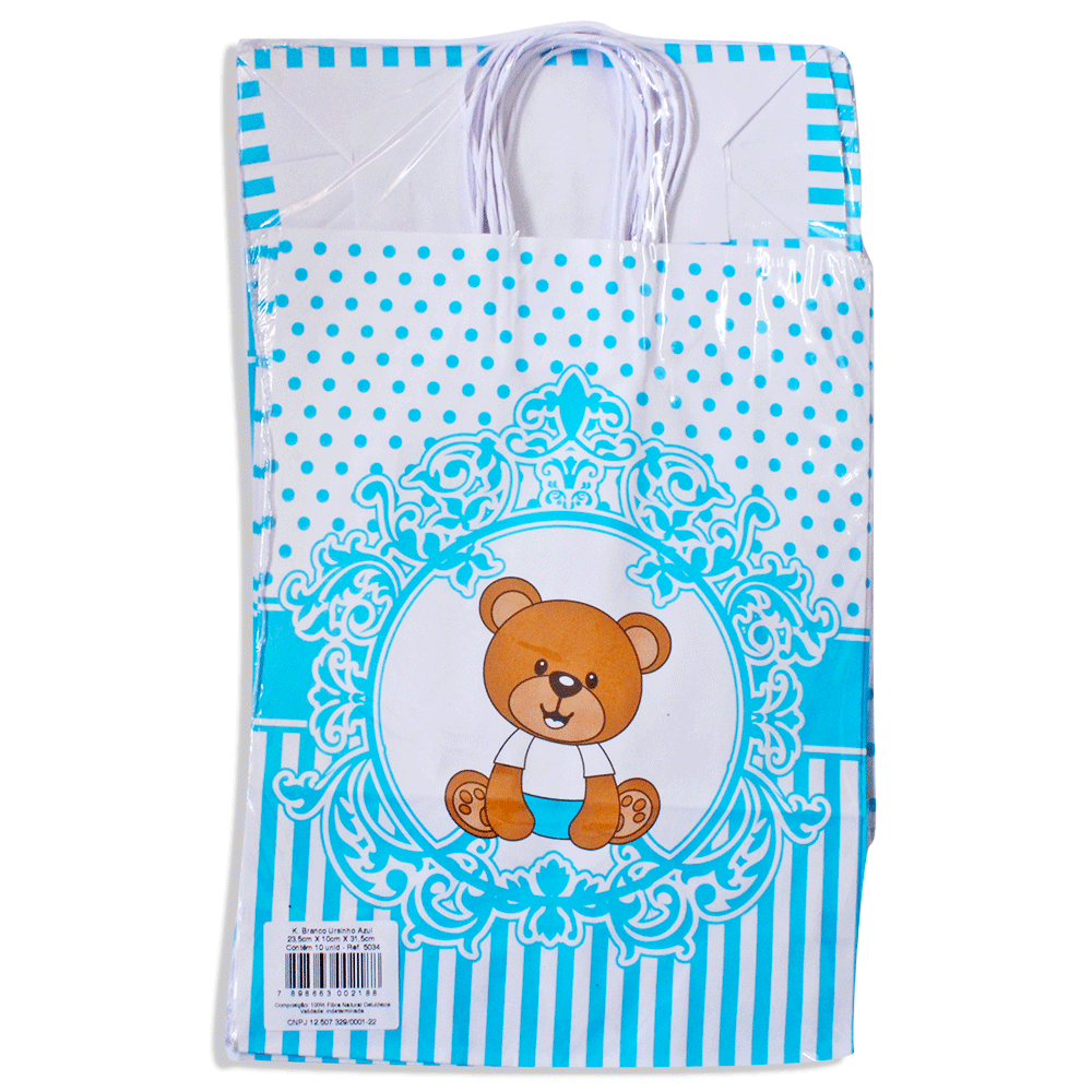 Sacola Kraft Infantil Estampa Urso Tamanho 17,5 x 8,5x 21,5 Kit com 10 unidades