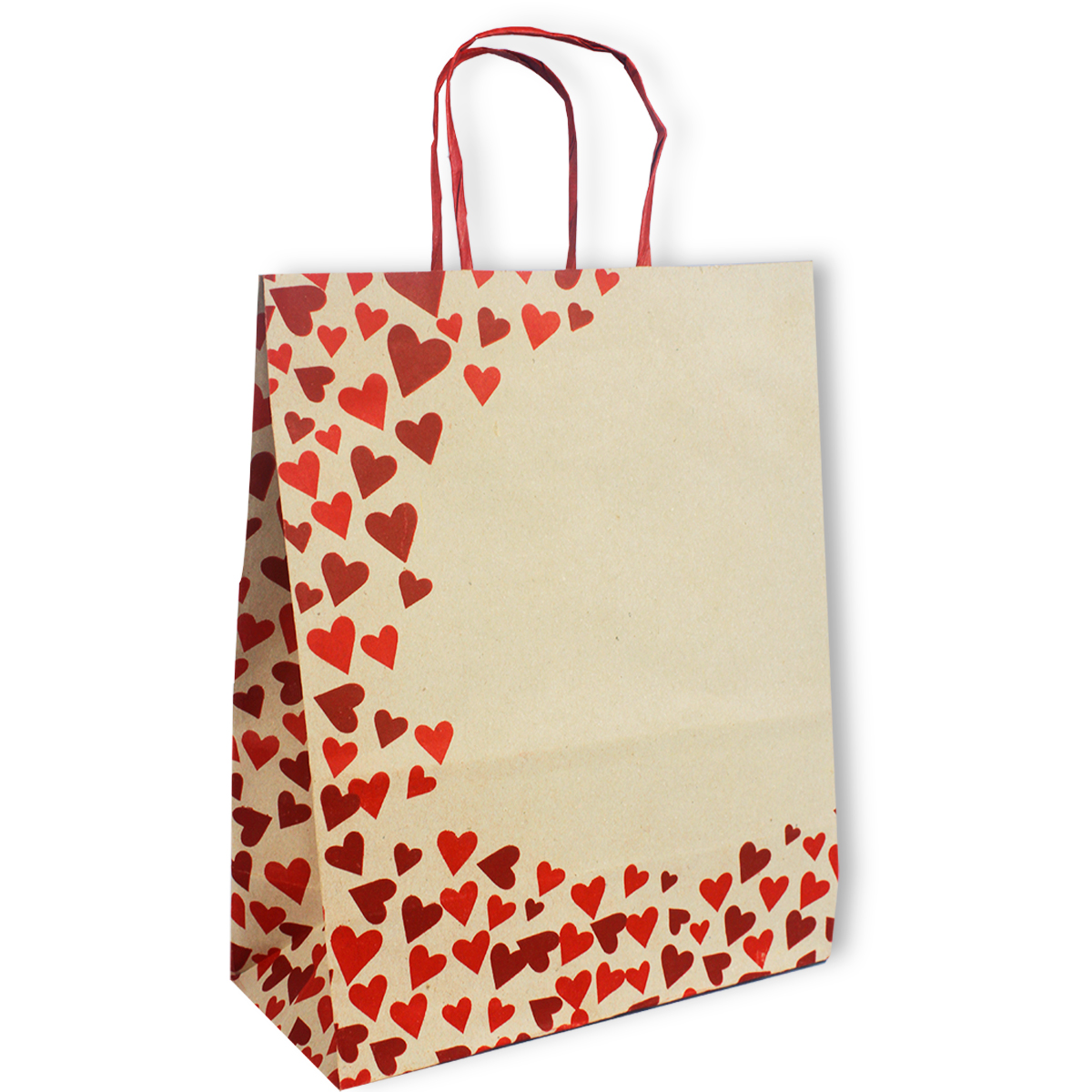Sacola Kraft para Presente Coração tamanho 21,5x17,5x8 com 10 unidades