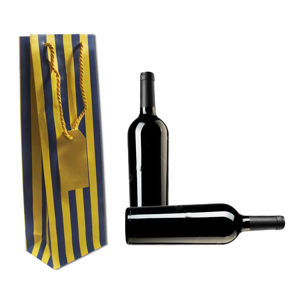 Sacolas Para Presente Garrafa de Vinho Premium Listras Marinho c/ Ouro Tam 35x11x8cm Pacote com 10 unidades